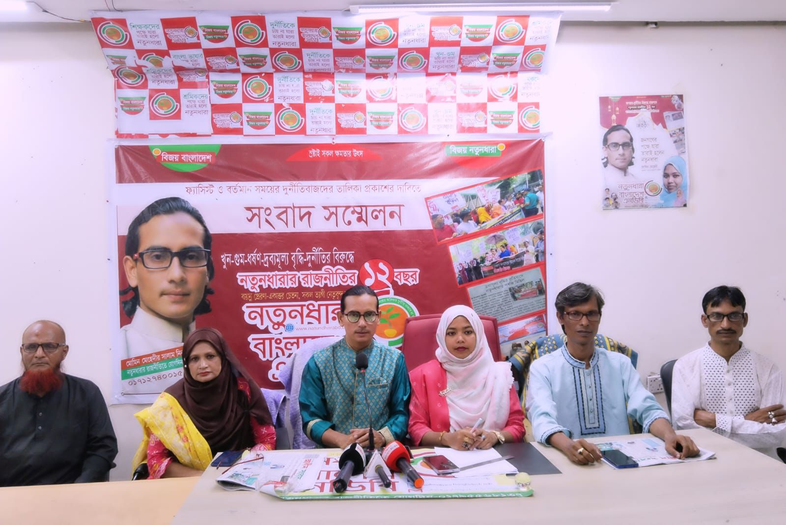 ২৭ জুন বেলা ১১ টায় ২৭/৭ তোপখানা রোডস্থ বিজয় মিলনায়তনে অনুষ্ঠিত সংবাদ সম্মেলনে এসময় বক্তব্য রাখেন প্রেসিডিয়াম মেম্বার গাজী মনছুর, সিনিয়র ভাইস চেয়ারম্যান শান্তা ফারজানা, ভারপ্রাপ্ত মহাসচিব কাজী মুন্নি আলম, যুগ্ম মহাসচিব মনির জামান, সদস্য হরিদাস সরকার, আফতাব মন্ডল প্রমুখ। মোমিন মেহেদী এসময় আরো বলেন, নির্মম হলেও সত্য গত ১১ মাসে স্বৈরাচার ফিরেছে শিক্ষার্থী-ব্যবসায়ী সিন্ডিকেট ও আমলা-উপদেষ্টাদের কাঁধে ভর করে। যে কারণে একের পর এক ভূল সিদ্ধান্ত-ভুলপথে হাঁটছে ছাত্রদের সরকার খ্যাত ড. ইউনূসের সরকার। তারা জুলাই যোদ্ধাদের তালিকা দিচ্ছে, কিন্তু জুলাই অপরাধীদের তালিকা দিতে ব্যর্থ যেমন হচ্ছে, তেমনই ফ্যাসিস্ট ও বর্তমান সময়ের দুর্নীতিবাজদের তালিকা প্রণয়নে সম্পূর্ণ ব্যর্থ হয়েছে। এই সরকারের একটা অংশ সহিংসতা ছড়ানোর নায়ক প্রবাসী ইউটিউবারদের দ্বারা প্রভাবিত হয়ে লাম্পট্যে-দুর্নীতি আর মববাজীতে মজে গেছে। আরেকটি অংশ সরকারকে খাদের কিণারে নিয়ে গিয়ে ১১ মাস আরাম-আয়েশে সময় কাটিয়ে এখন 'বিপ্লবী সরকার' গঠনের ঘোষণা দিচ্ছে। এমন পরিস্থিতি থেকে উত্তরণে নতুনধারা বাংলাদেশ এনডিবি ১২ বছরের মত এখানো জনসাধারণকে সাথে নিয়ে মাঠে থাকার ঘোষণা দিচ্ছে ২০১২ সালের ৩০ ডিসেম্বরের আত্মপ্রকাশের দিনটির মত করেই।